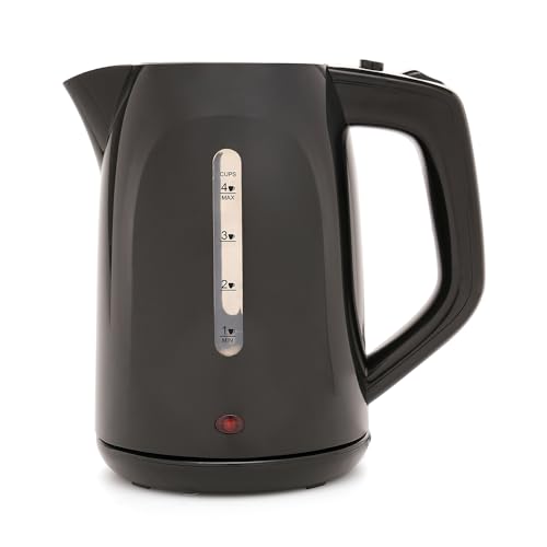 KitchenPerfected Quiet Boil Eco-Friendly Lightweight Cordless Kettle - 1100w, 1 cup boil, 1.0 Litre (4 cups), Removable Filter, Elderly, Hotels, B&B's - Black - E1571BK