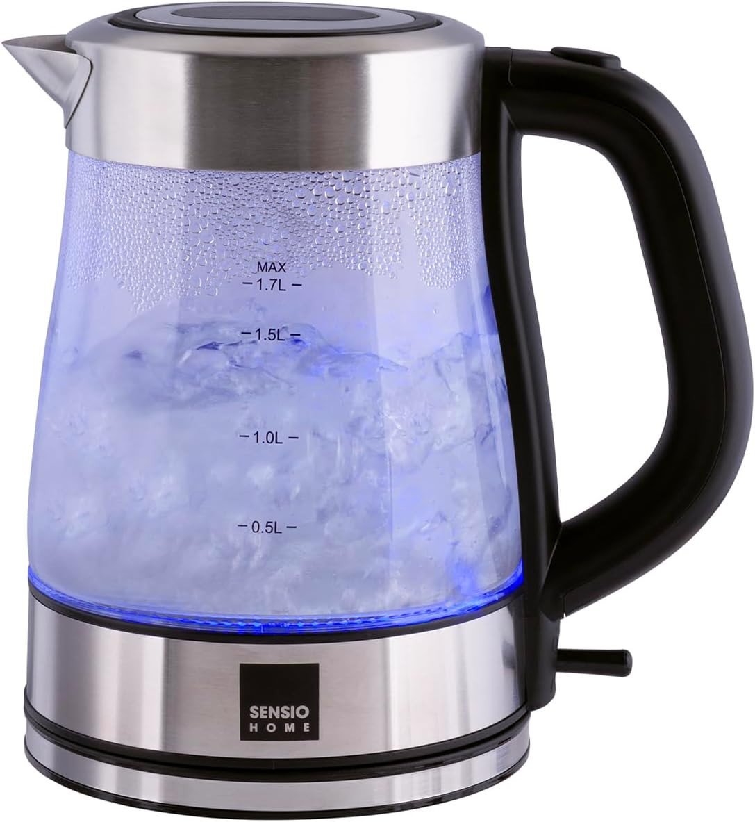 Sensio Home Electric Cordless Glass Kettle 1.7L Quiet Fast Boil, 3000W