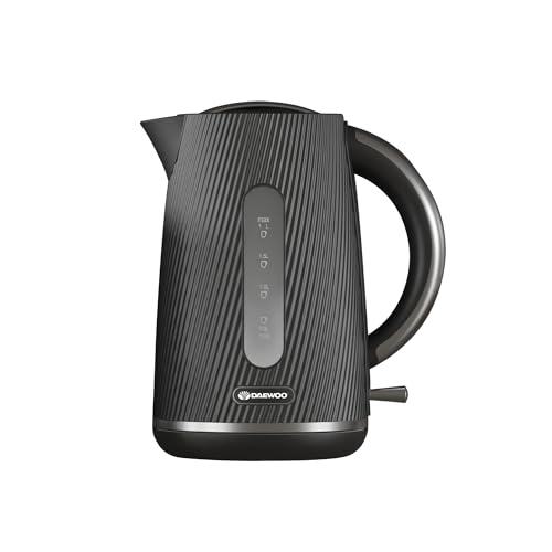 Daewoo Cascade 1.7L Electric Kettle – 3KW Fast Boil, Limescale Filter, Auto Shut-Off, Textured Black Finish, Cordless 360° Base, Quiet Boil Technology