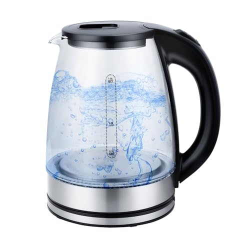 Electric Kettle Glass Kettle with Blue LED, Fast Boil Quiet Electric Glass Kettle, 1.8L, 1800W, Boil-Dry Protection, BPA Free (Removable lid)