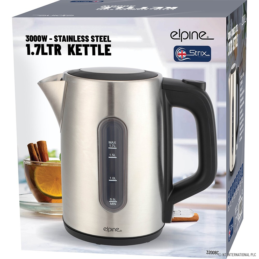 1.7L Electric Kettle Quiet Fast Boil Stainless Steel Jug Overheat Protect 3000W