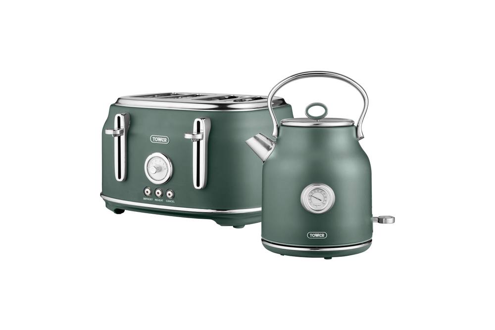 Tower Renaissance Kitchen Set, 1.7L Quiet Boil Kettle & 4 Slice Toaster, Forest Green, T10063FOR, T20065FOR in Dark Green