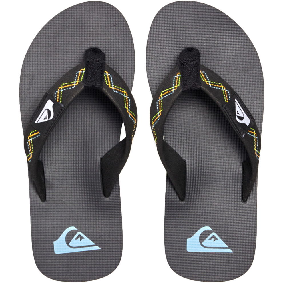 (1 UK, Black) Quiksilver Kids MoloKai Acid Drop Summer Beach Sandals Thongs Flip Flops - Black