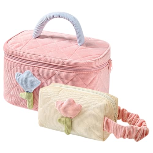Alipis 2Pcs Quilted Makeup Bags Large Travel Cosmetic Organizer Pink and Cream Toiletry Pouches for Women Portable with Secure Zipper for Vacation Business Trip and Daily Use