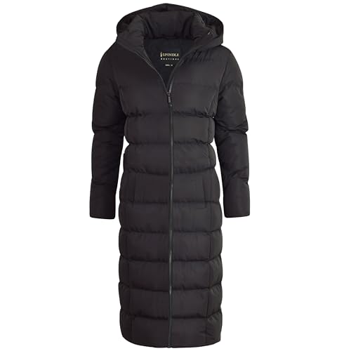 Spindle Womens Maxi Long Hooded Puffer Quilted Parka Coat Extra Long | Ladies Full Length Winter Jacket with Hood Black M