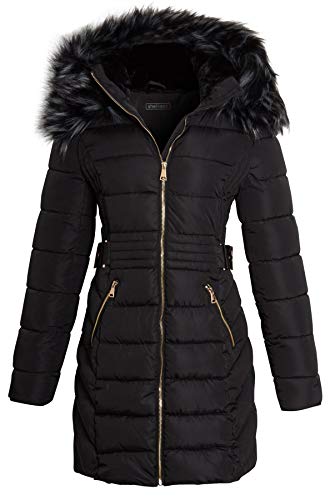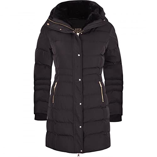 Spindle Women’s Designer Winter Lined Parka Quilted Coat Fur Collar Hooded Long Ladies Womens Jacket (18, Black Gold Hooded)