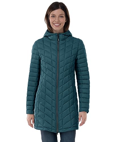 Outdoor Ventures Womens Winter Thermolite Long Puffer Coat, Ladies Lightweight Quilted Parka Windproof Waterproof Warm Insulated Jacket with Hood Dark Cyan S/UK 10