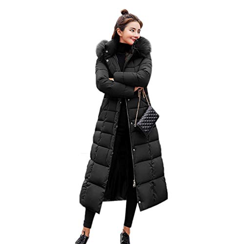 Vancavoo Women's Coats Winter Jackets Ladies Hooded Parka Long Quilted Puffer Coat Warm Fleece Lined Thick Overcoat Skiing Snowboarding Outerwear(Black,XL)