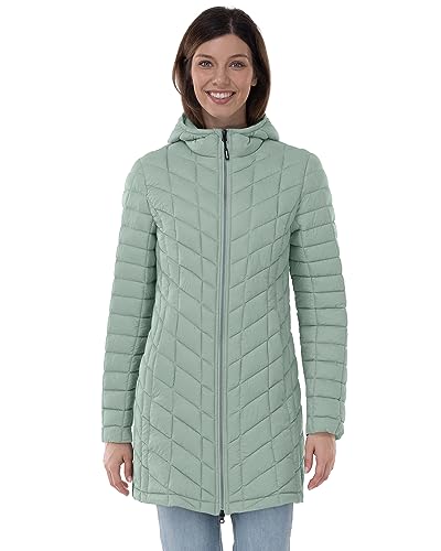 Outdoor Ventures Womens Winter Thermolite Long Puffer Coat, Ladies Lightweight Quilted Parka Windproof Waterproof Warm Insulated Jacket with Hood Ice Green S/UK 10