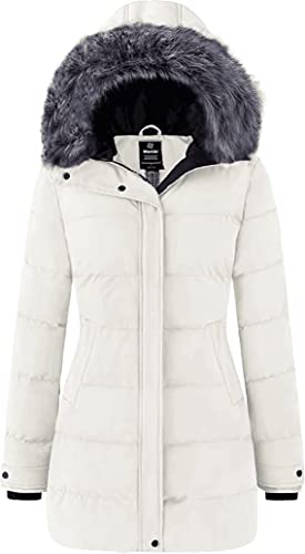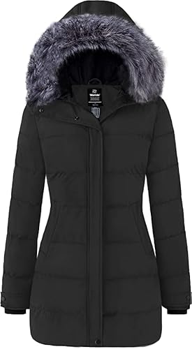 Wantdo Women’s Winter Long Quilted Winter Coat Puffer Warm Thicken Parka Classic Ladies Padded Jacket with Faux Fur Hood