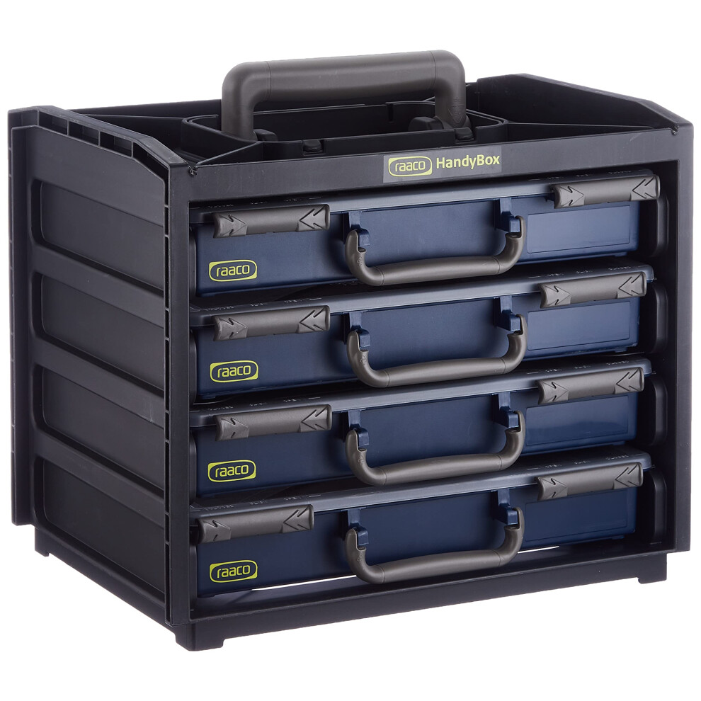 raaco 136242 HandyBox 55 a lightweight robust portable storage unit comes with 4 Raaco Assorter 55 service assorter 55 cases are fitted with sliding