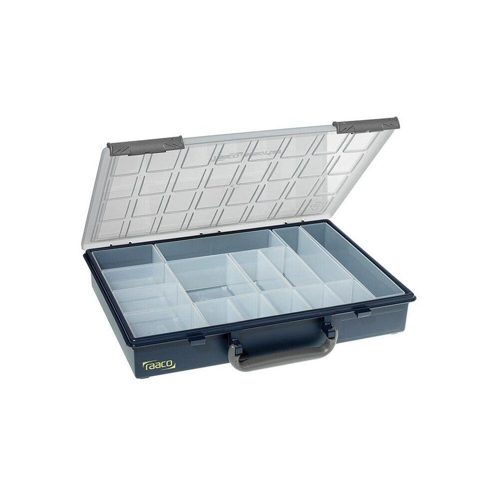 raaco 136242 HandyBox 55 a lightweight robust portable storage unit comes with 4 Raaco Assorter 55 service assorter 55 cases are fitted with sliding locks and removable compartments