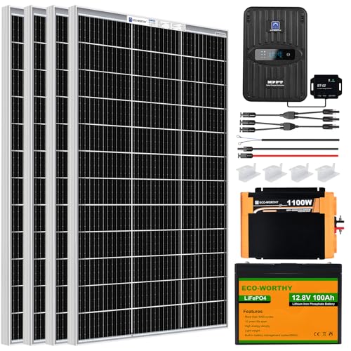 ECO-WORTHY 480W 12V Solar Panel System 2kWh/Day,Ideal for RVs, Boats,Homes:4pcs 120W Bifacial Solar Panel + 100AH LiFePO4 Battery + 40A MPPT Solar Controller + 1100W 12V Inverter + Accessories