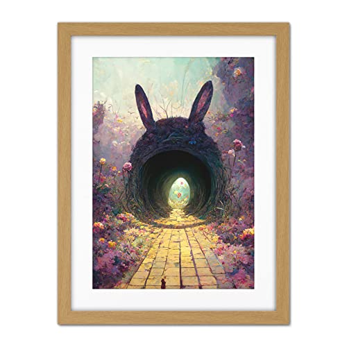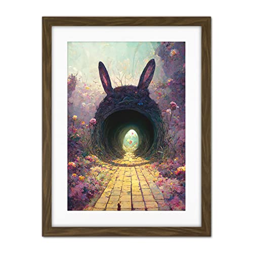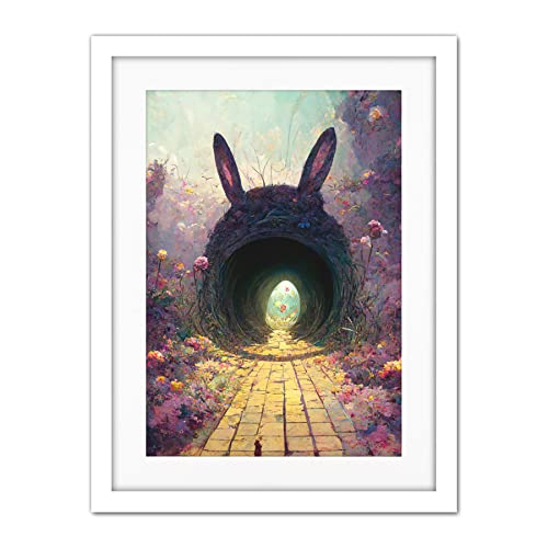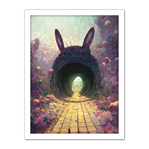 Doppelganger33 LTD Down The Rabbit Hole Alice In Wonderland Easter Bunny Tunnel Artwork Framed Wall Art Print 18X24 Inch