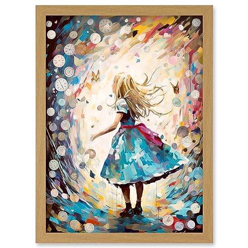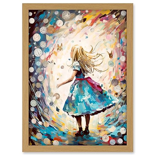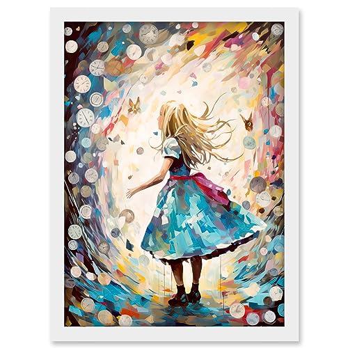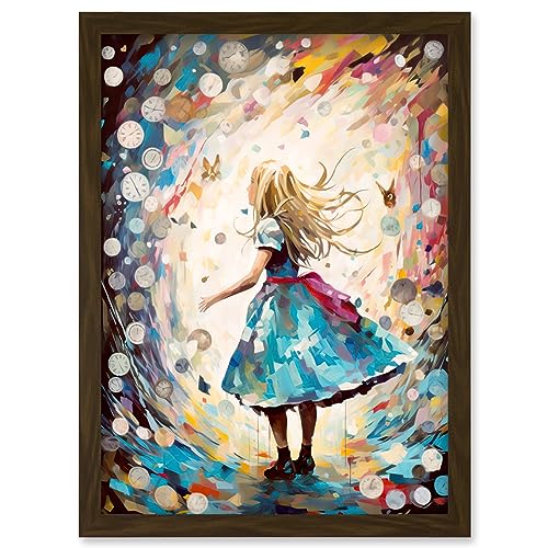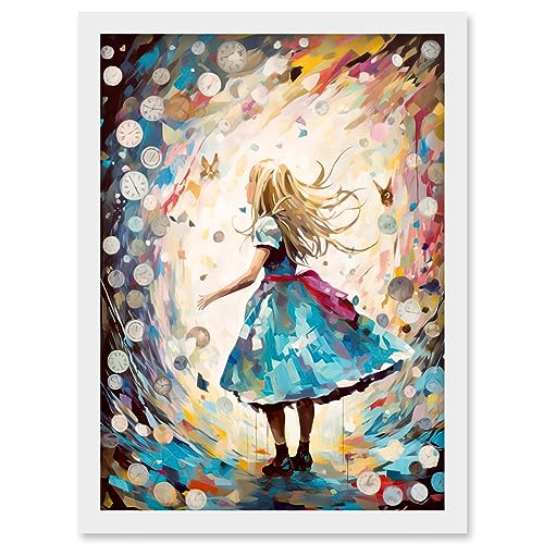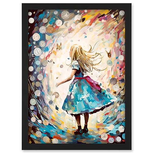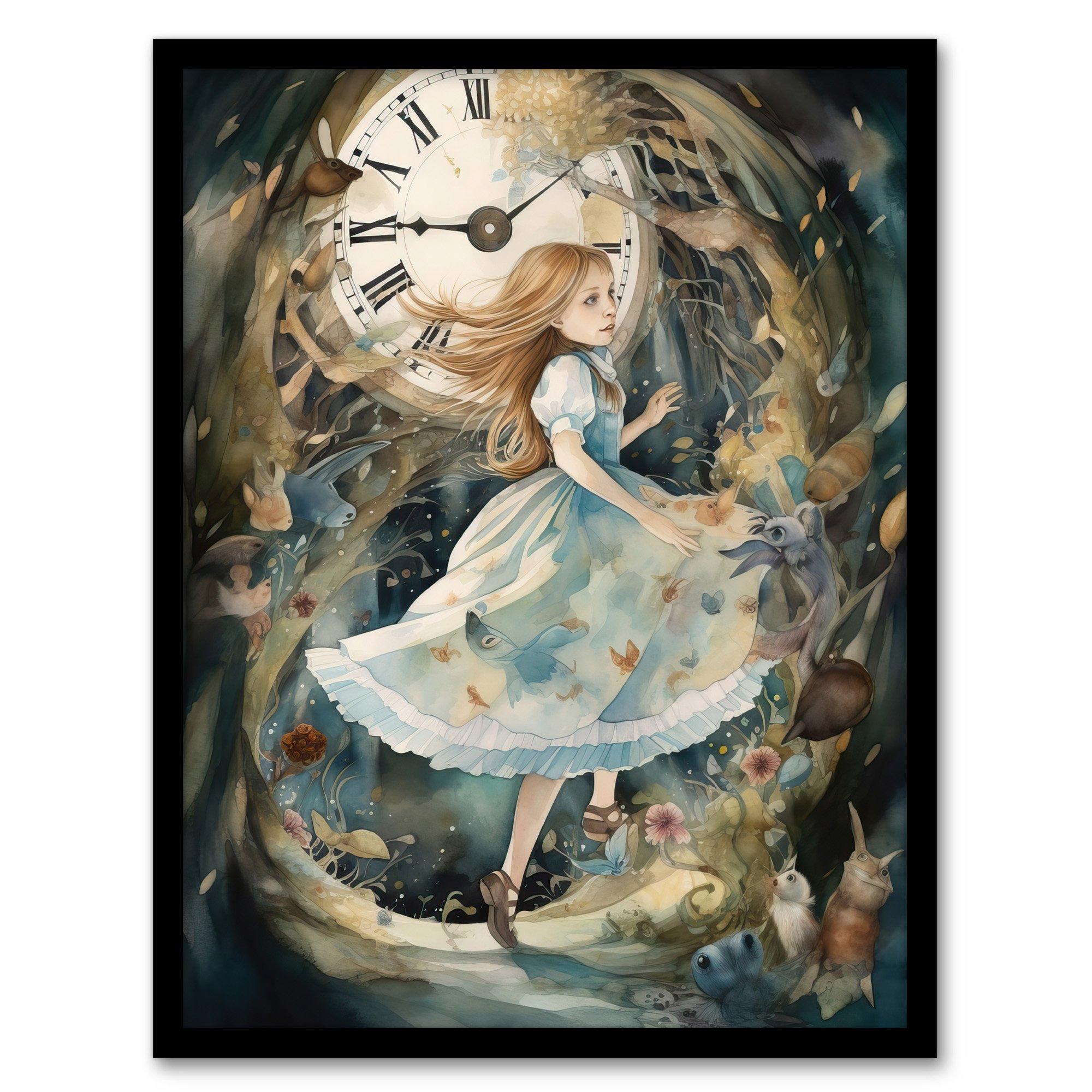 Artery8 Alice in Wonderland Clocks Down the Rabbit Hole Artwork Framed Wall Art Print A4
