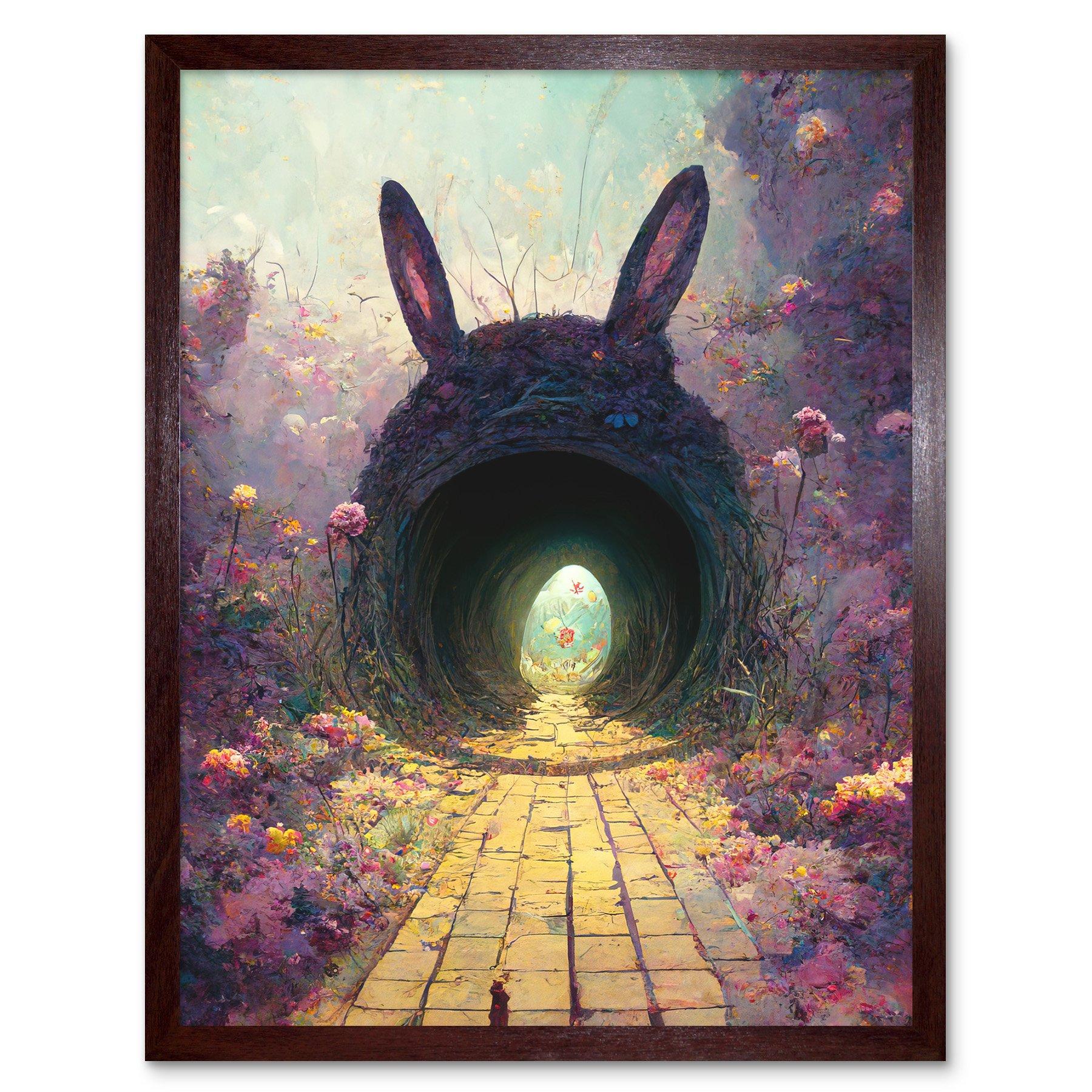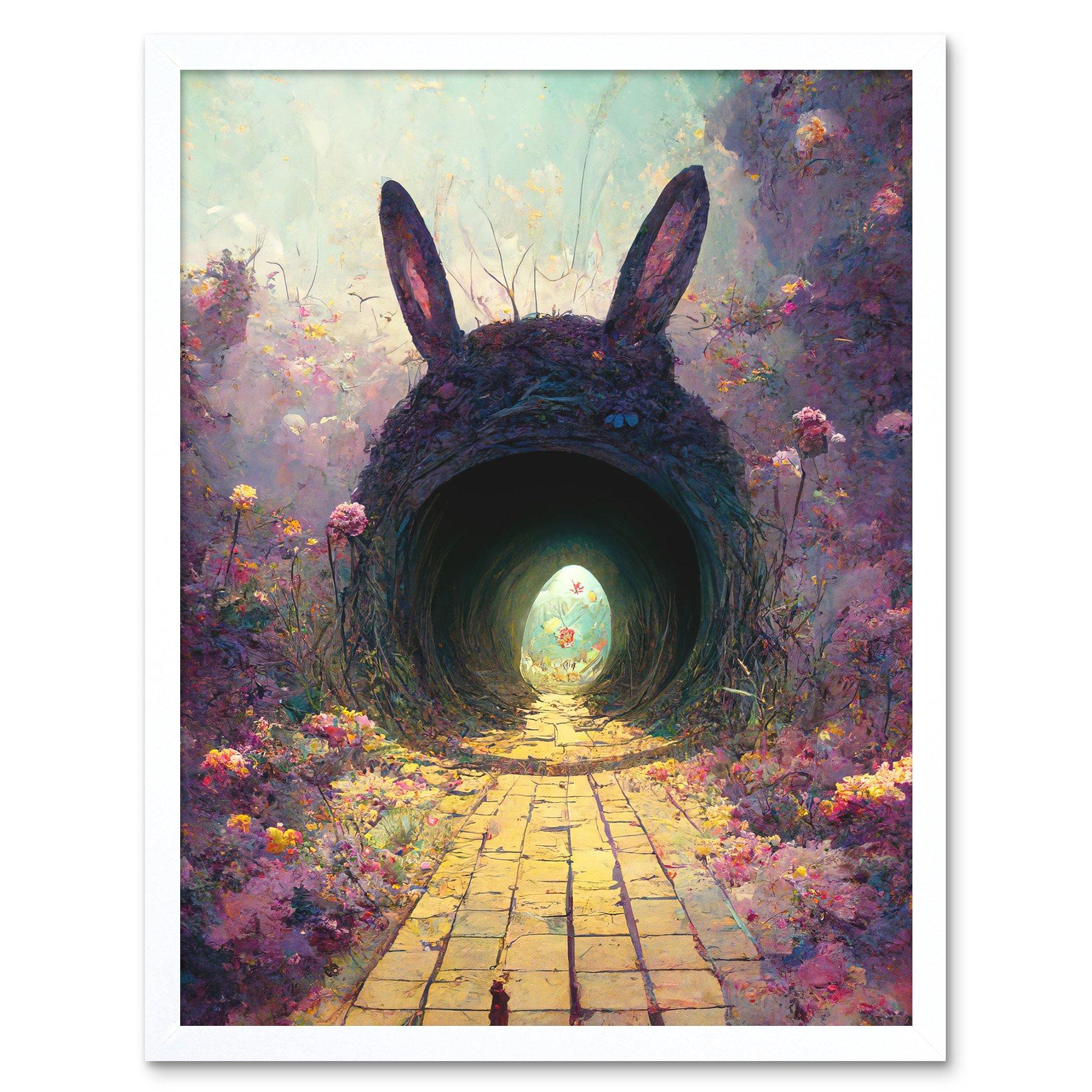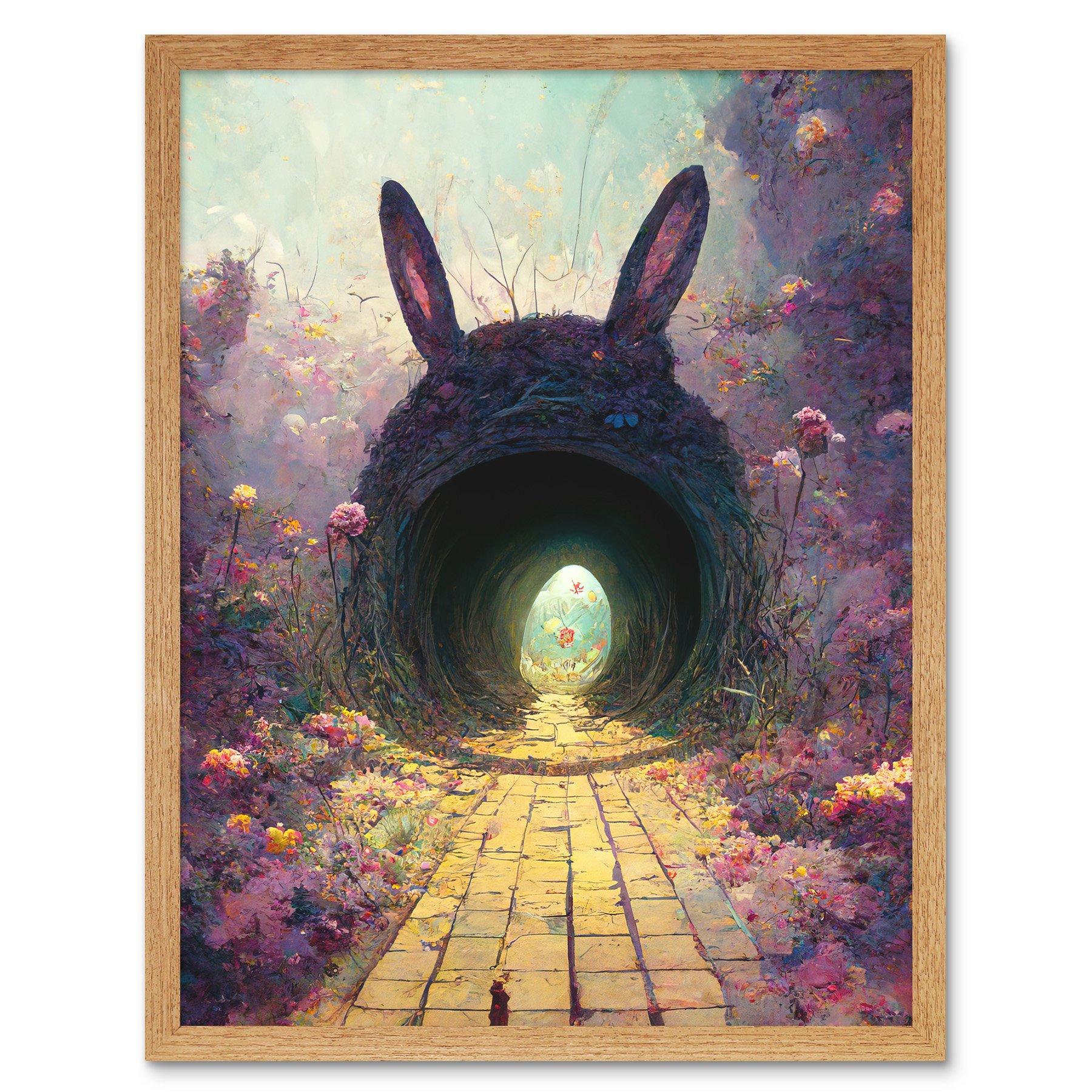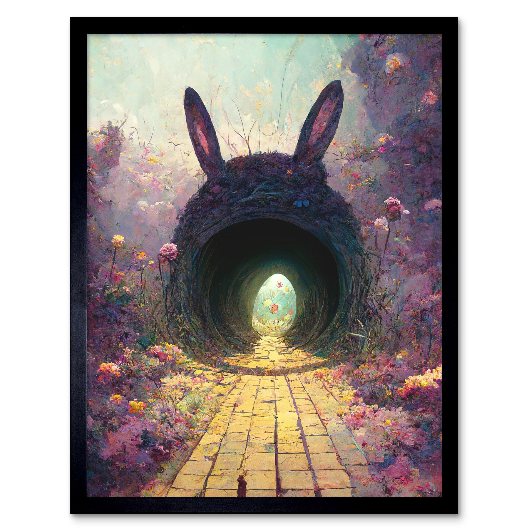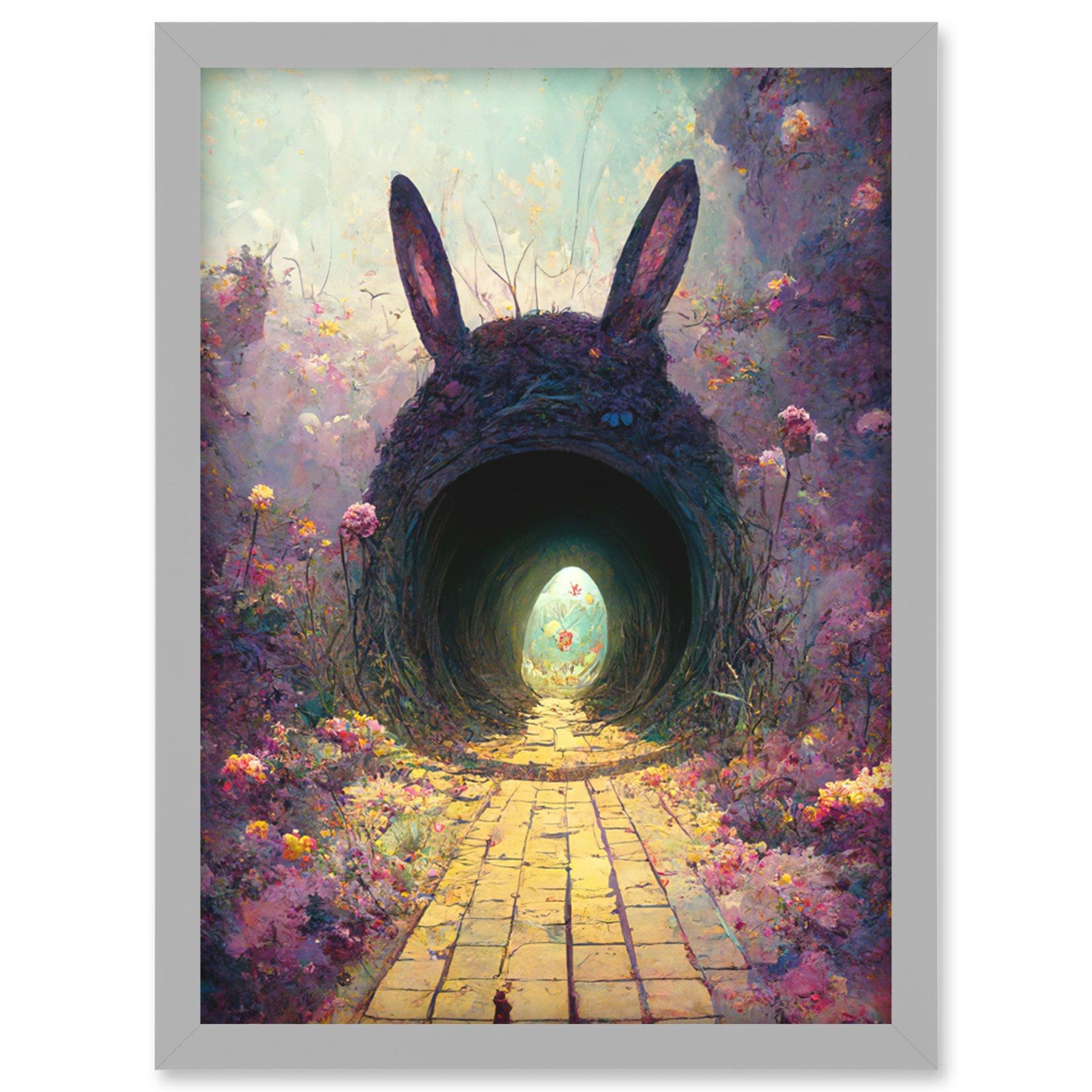Down The Rabbit Hole Alice In Wonderland Easter Bunny Tunnel Artwork Framed Wall Art Print A4