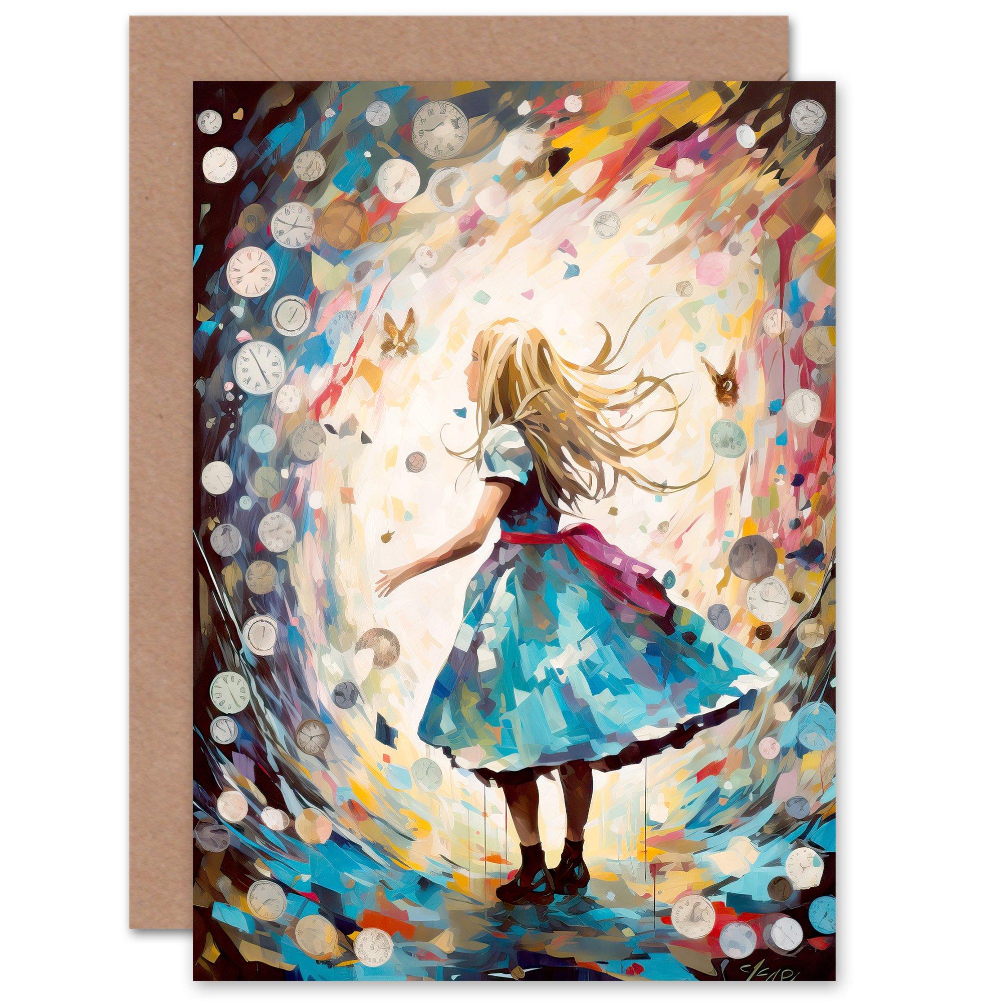 Alice in Wonderland Clocks Down the Rabbit Hole Birthday Blank Greeting Card