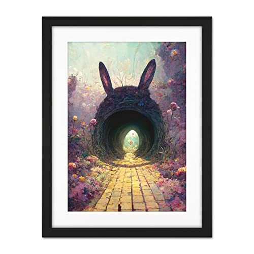 Down The Rabbit Hole Alice In Wonderland Easter Bunny Tunnel Art Print Framed Poster Wall Decor 12x16 inch