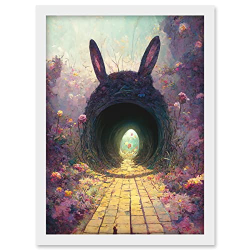 Doppelganger33 LTD Down The Rabbit Hole Alice In Wonderland Easter Bunny Tunnel Artwork Framed Wall Art Print A4