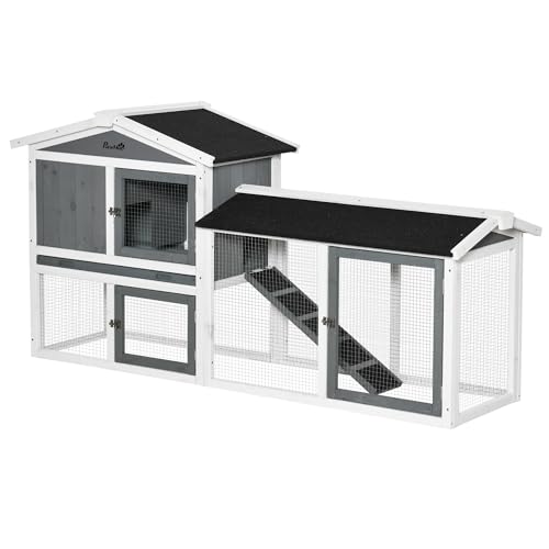 PawHut 2 Tiers Rabbit Hutch and Run, Guinea Pig Hutch Outdoor with Sliding Tray, Ramp, for 1-2 Rabbits