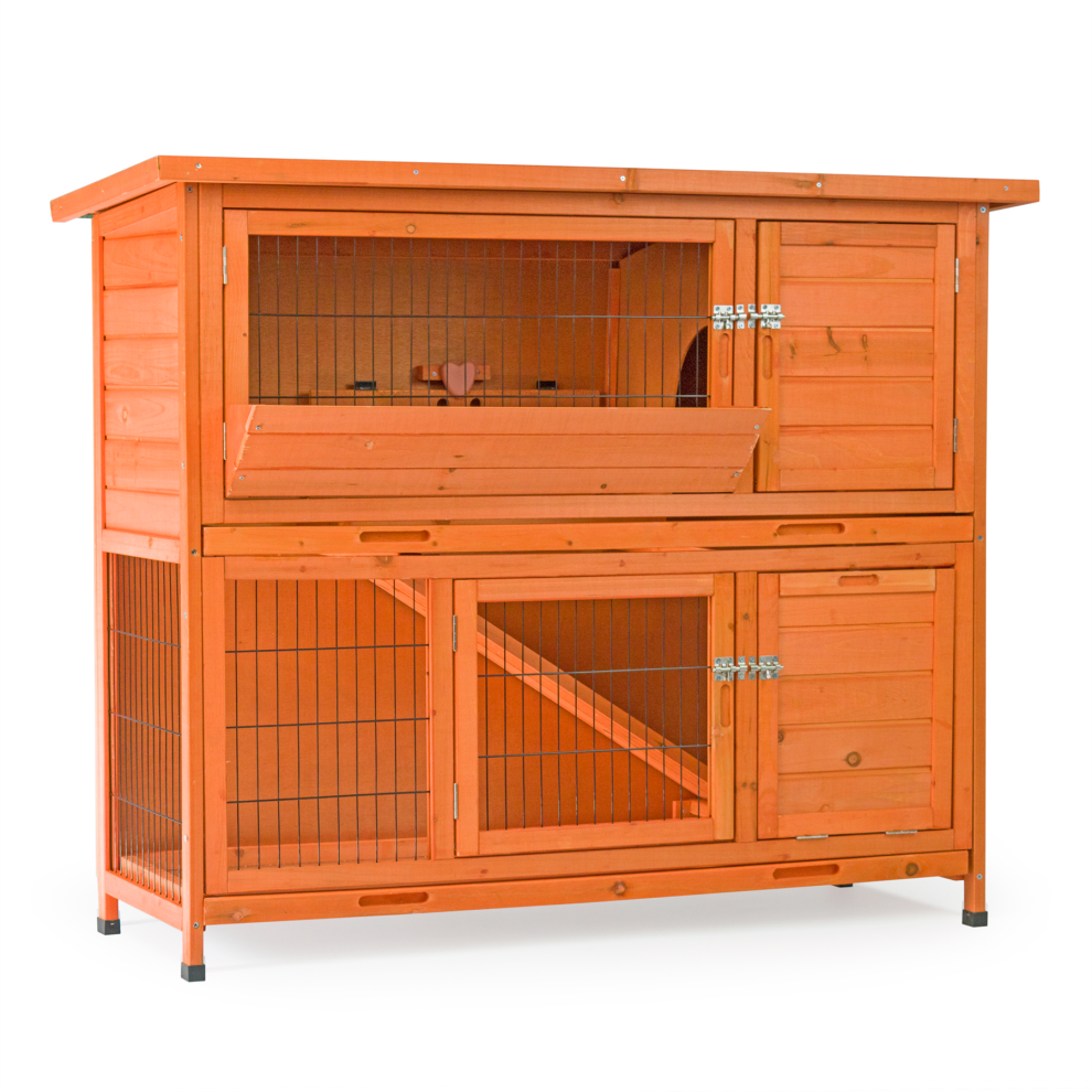 KCT 4ft Milan 2 Tier Wooden Double Rabbit Hutch with Run & Doors Outdoor / Indoor