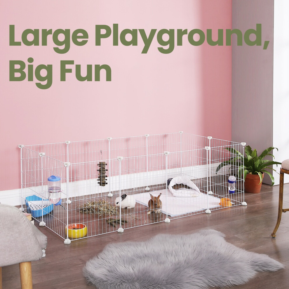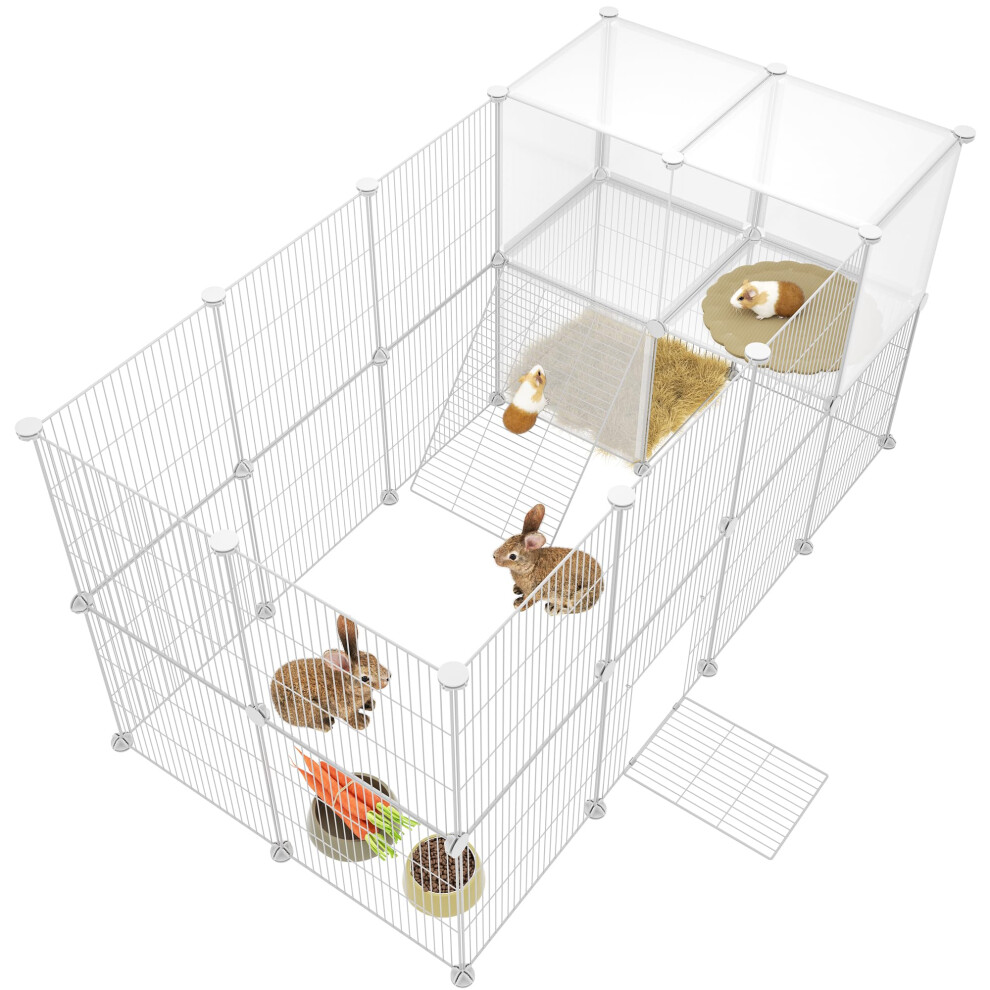 Guinea Pig Cage, Indoor Rabbit Run Hutch Cage, Exercise Enclosure, DIY, White