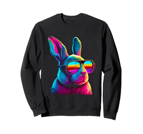 Psychedelic Rabbit Colorful Sunglasses Cool Vibe Sweatshirt