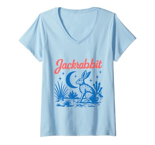Womens Jackrabbit Tee Retro Vibe Graphic Western Aesthetic Rabbit V-Neck T-Shirt