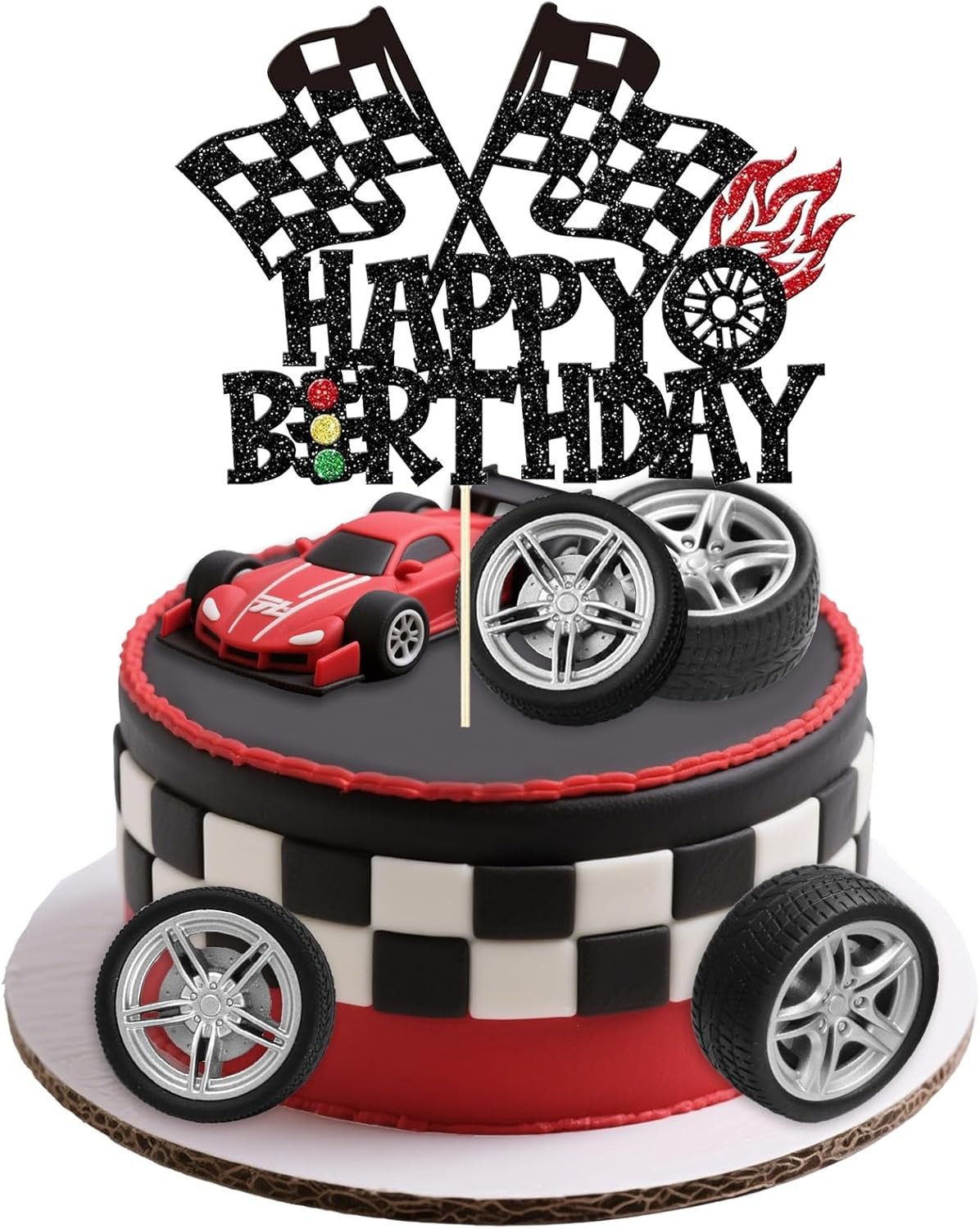 5 Pcs Hot Wheels Cake Topper Set, Monster Truck Car Cake Topper Race Checkered F