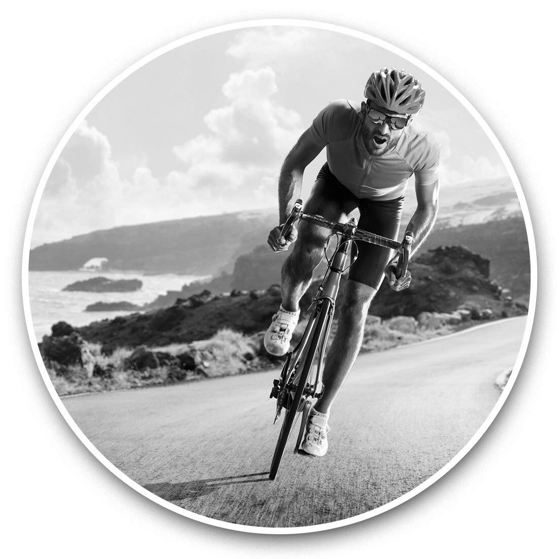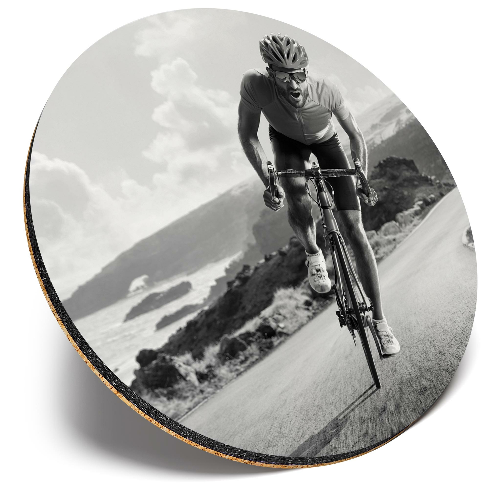 Round Single Coaster - BW - Road Bicycle Race Bike Cycling Mens #43449