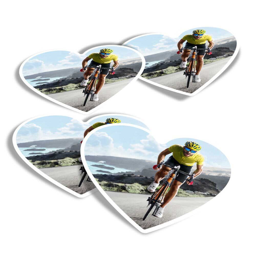 4x Heart Stickers - Road Bicycle Race Bike Cycling Mens #24114