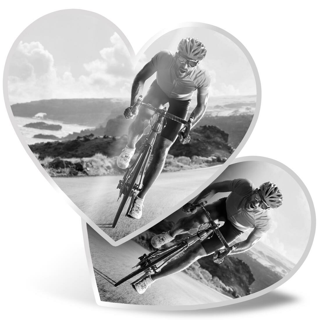 2 x Heart Stickers 7.5 cm - BW - Road Bicycle Race Bike Cycling Mens #43449