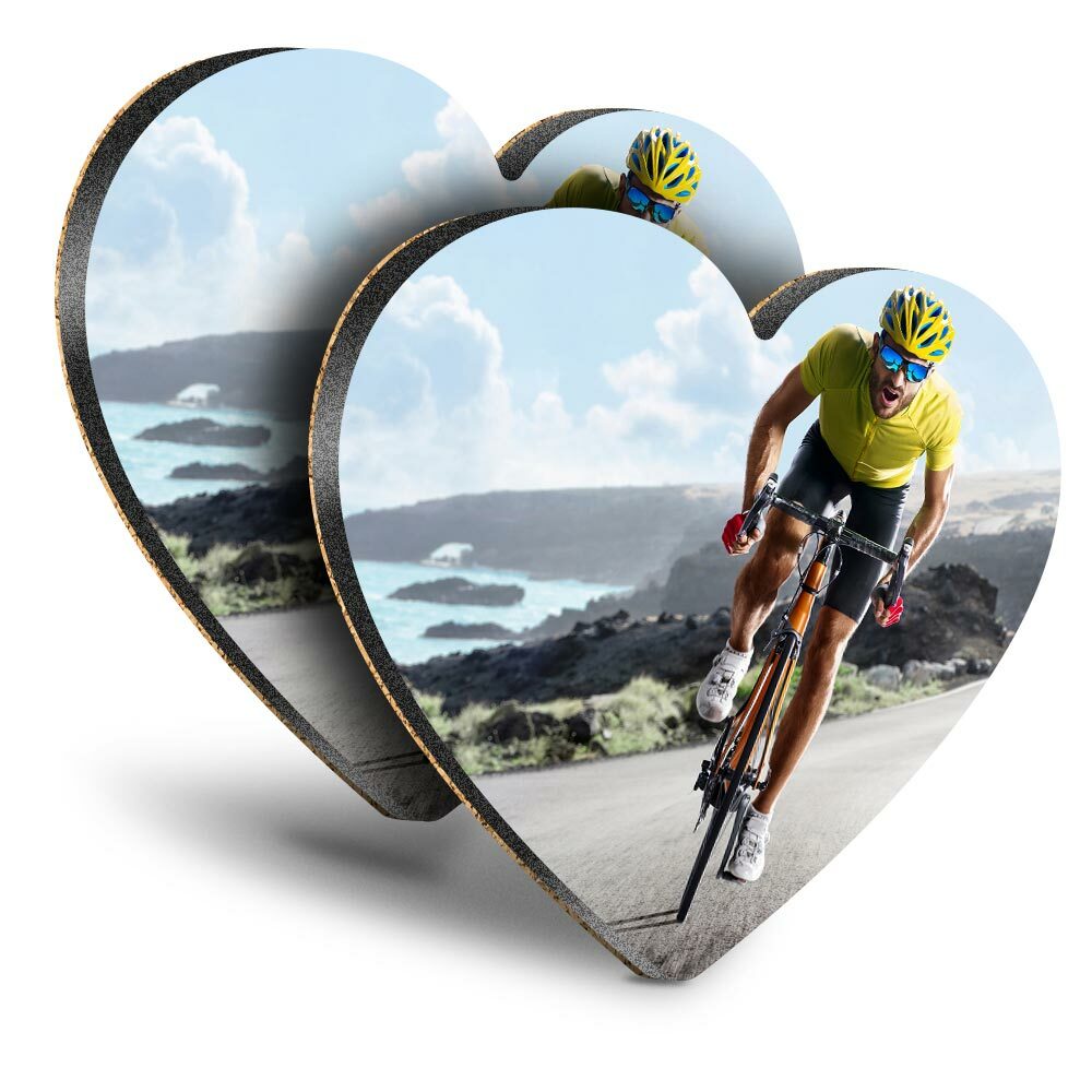 2x Heart MDF Coasters - Road Bicycle Race Bike Cycling Mens #24114