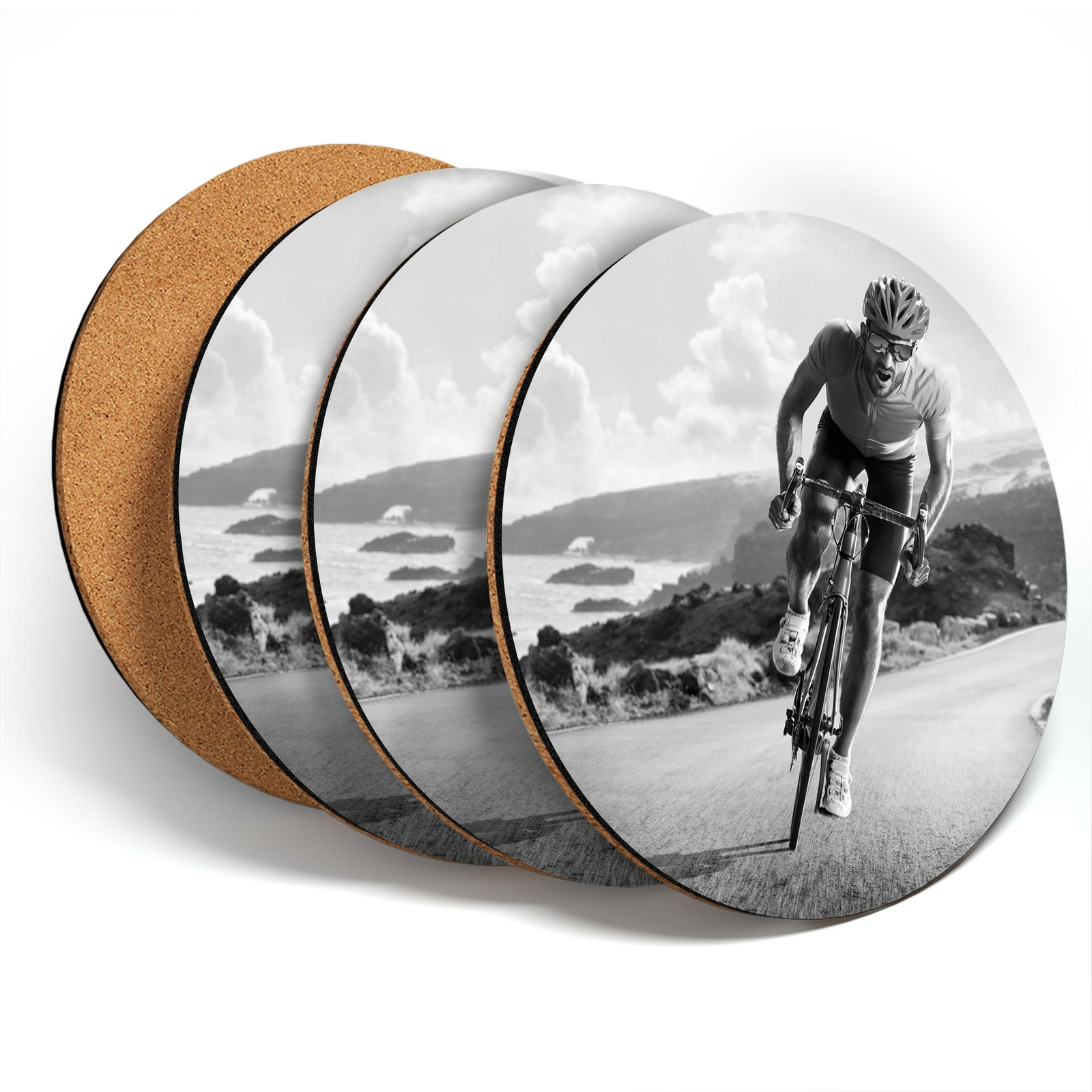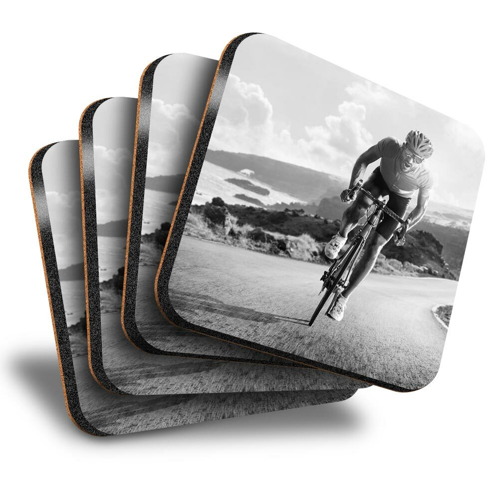 4 x Coasters - BW - Road Bicycle Race Bike Cycling Mens #43449