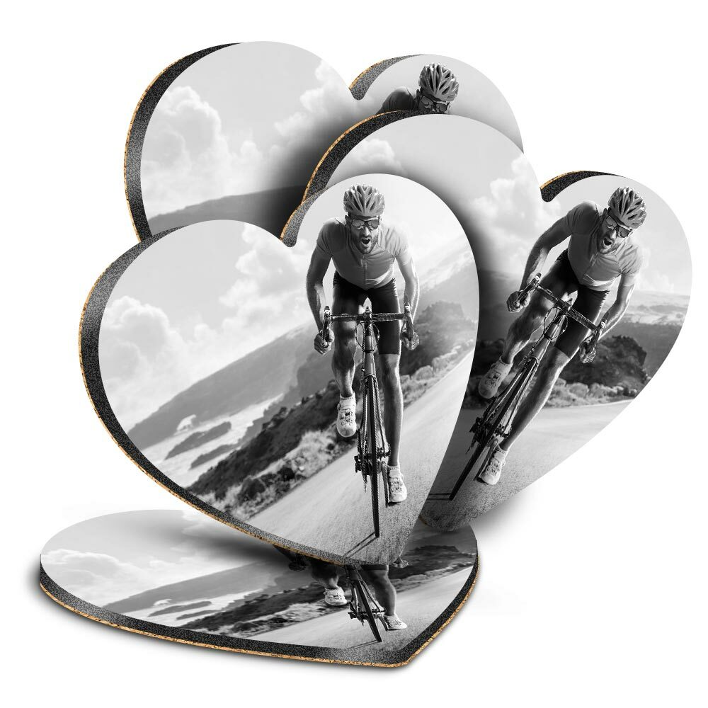 4x Heart MDF Coasters - BW - Road Bicycle Race Bike Cycling Mens #43449