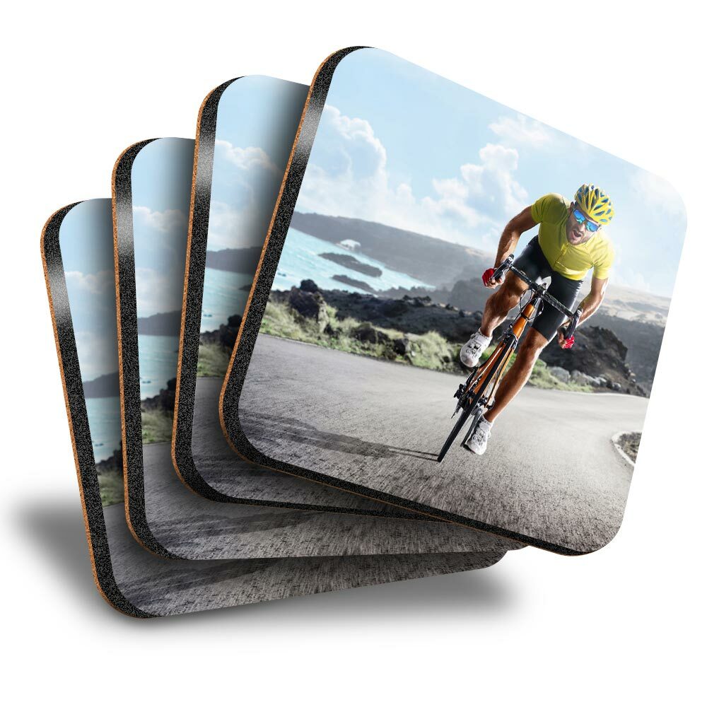 Set of 4 Square Coasters - Road Bicycle Race Bike Cycling Mens #24114