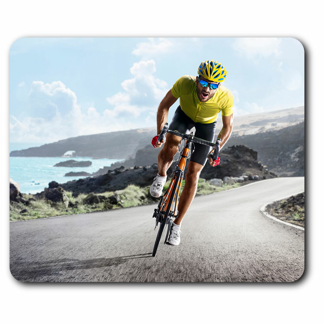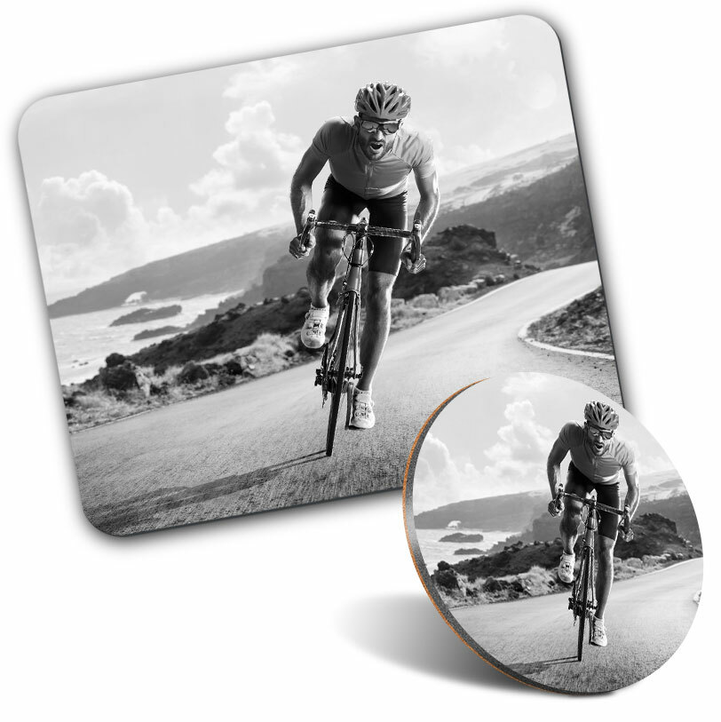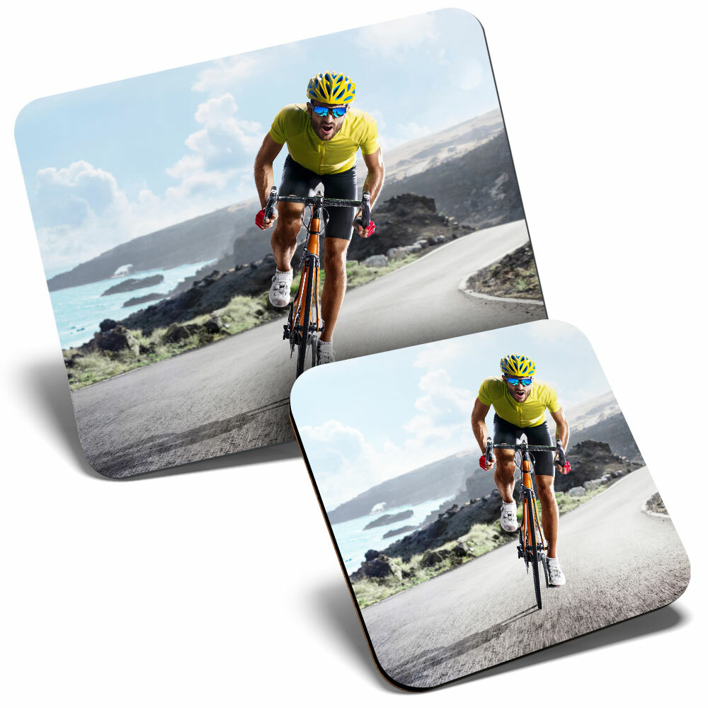 Mouse Mat & Coaster Set - Road Bicycle Race Bike Cycling Mens 23.5 x 19.6 cm & 9 x 9 cm for Computer & Laptop, Office, Gift, Non-slip Base #24114