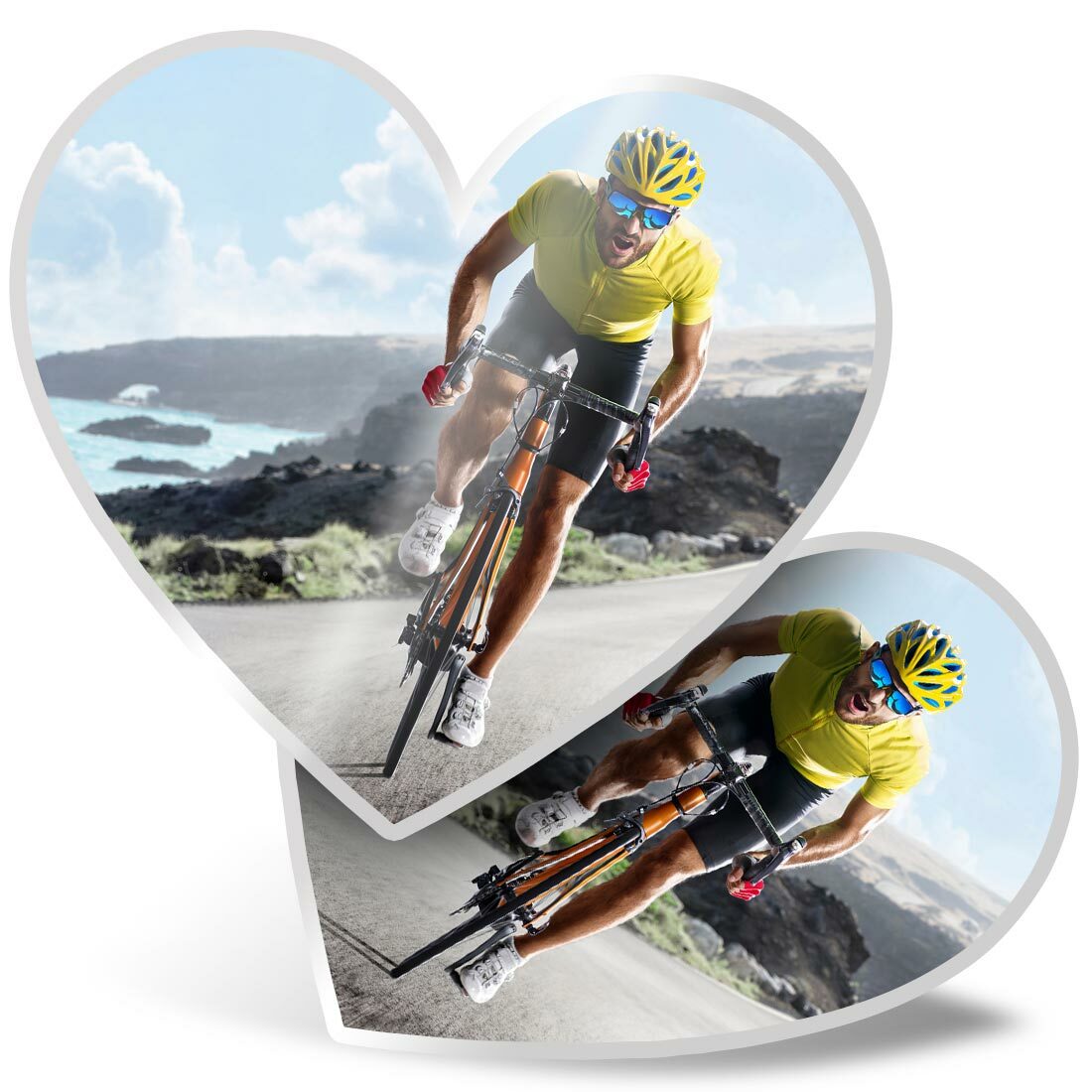 2 x Heart Stickers 7.5 cm - Road Bicycle Race Bike Cycling Mens #24114