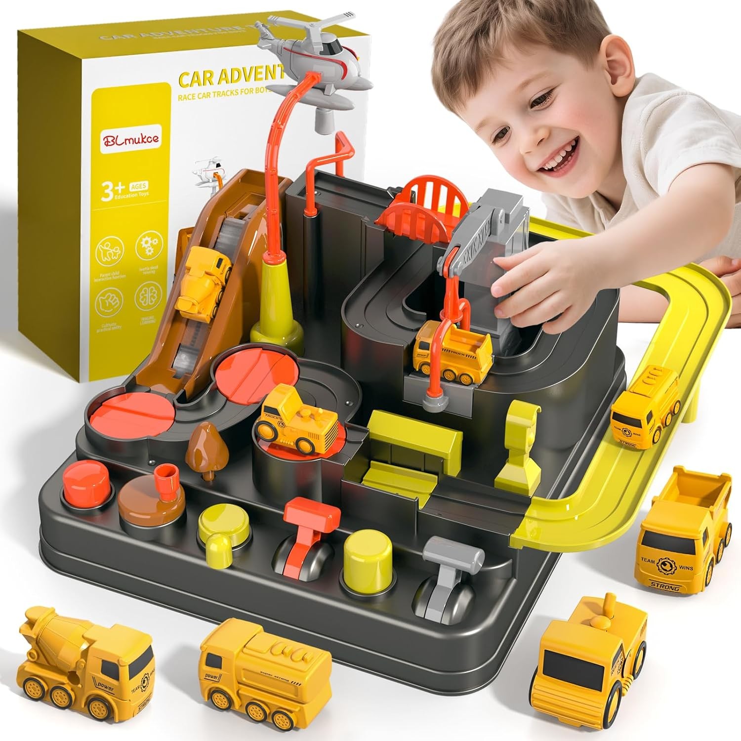 BLmukce Race Track Toys for 3 4 5 6 7 8 Year Old Boys & Girls,Fire & Rescue Adventure Car Set with Puzzle, STEM Educational Toddler Birthday Gift - Motor Skills & Montessori Learning (Yellow)
