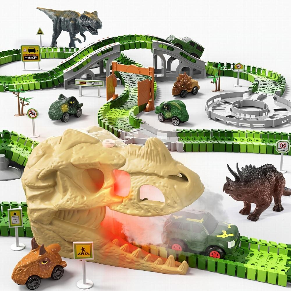 249pcs Dinosaur Race Car Track Toys For Kids Dinosaur Race Tracks Toys With Light Sound & Spray Birthday Dinosaur Toys Gift For Kids