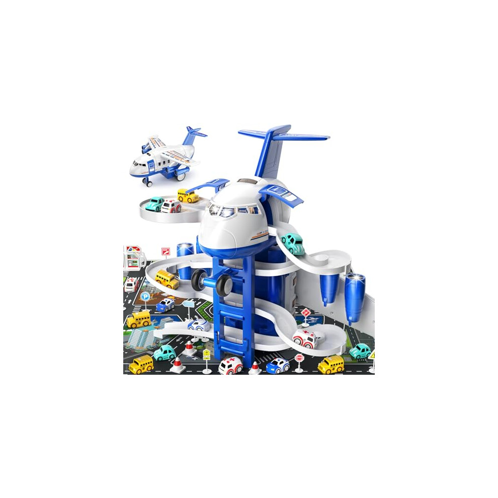 Kids Aeroplane Toys Race Track Car Toys for 3 4 5 6 7 Boys - Transformed Plane Garage Adventure Toys with 8 City Cars for Toddler Age 3-6, Parking Lot