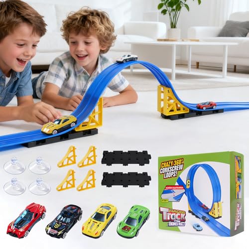 Qkbuza Race Car Circuit for Kids, Cool Vehicle Set - Race Track for Toys - for Boys Birthday Christmas Home Travel School Nursery