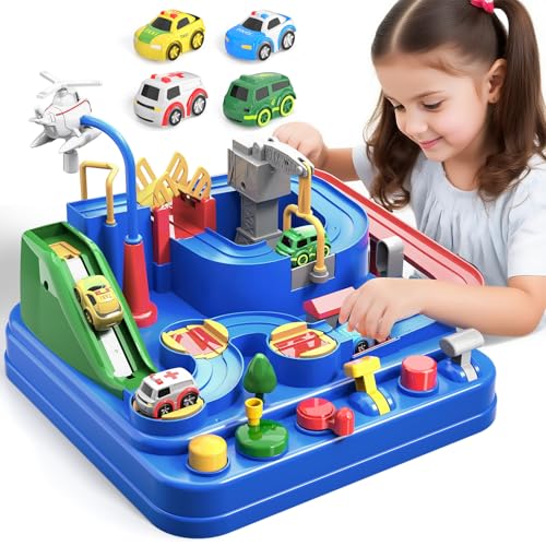 TGXLAK Kids Car Race Track - Car Adventure Toys with 4 Vehicles, Preschool Educational & Interactive Toy Gifts for 3-5 Year Old Boys & Girls
