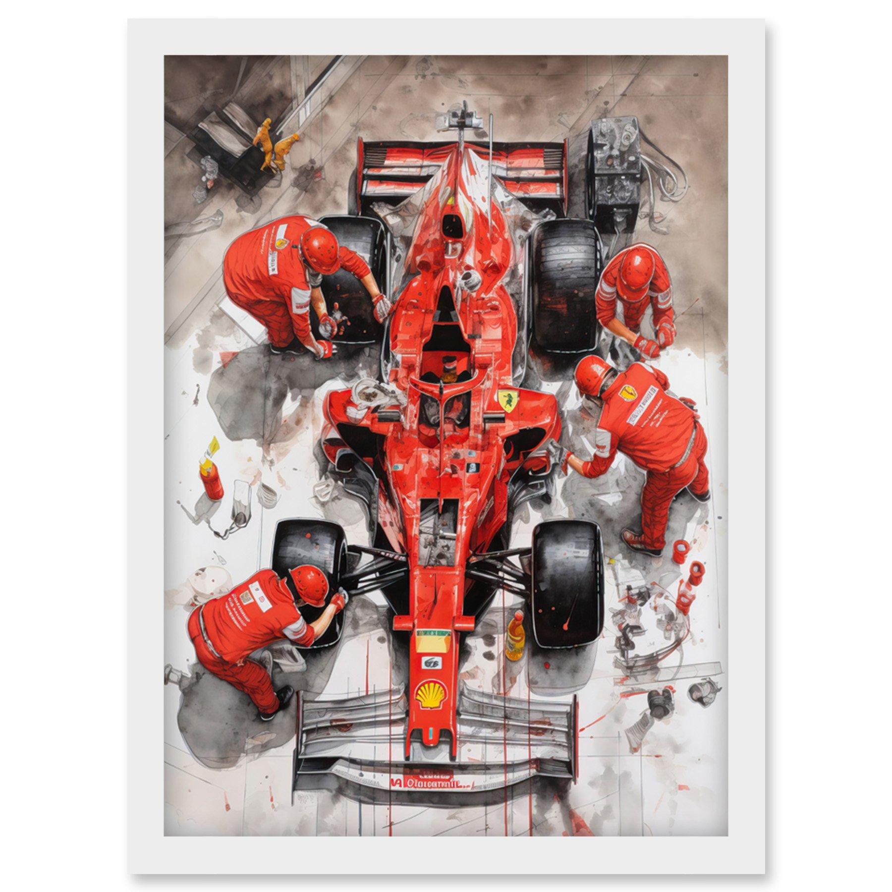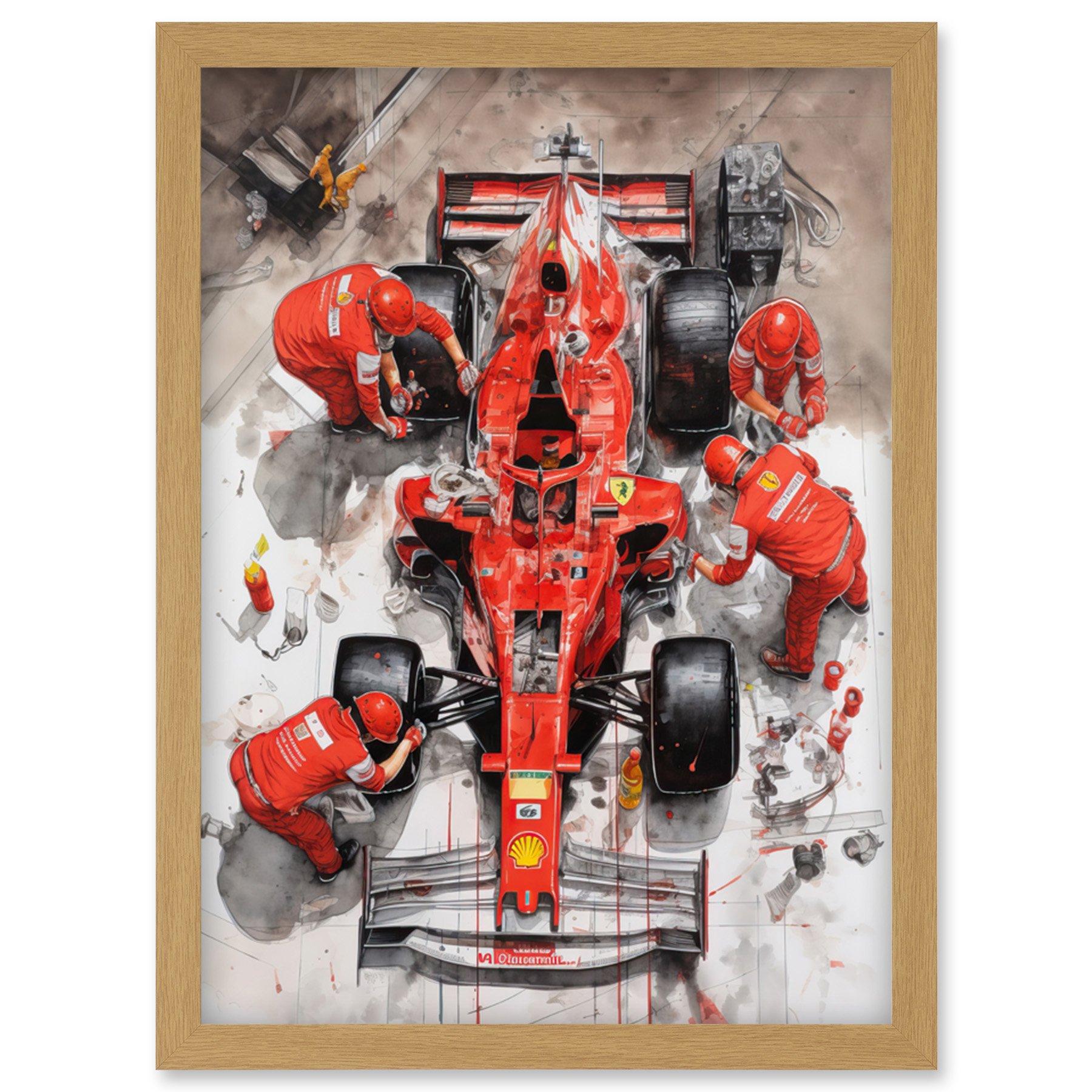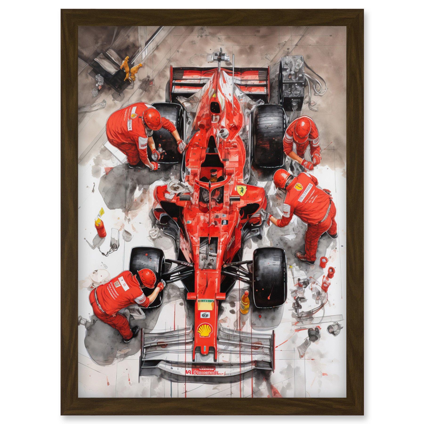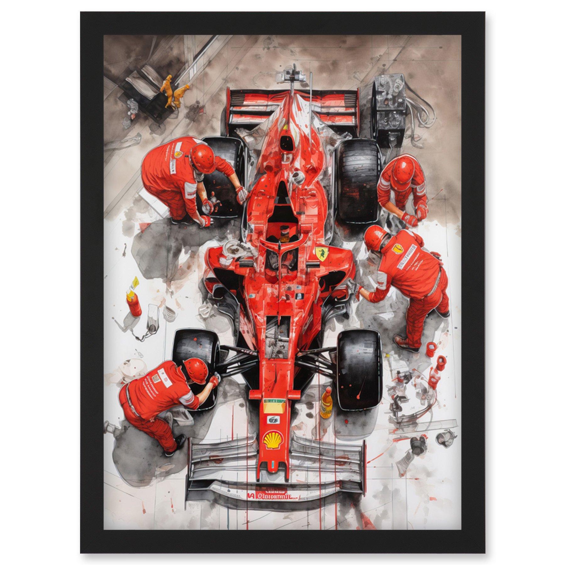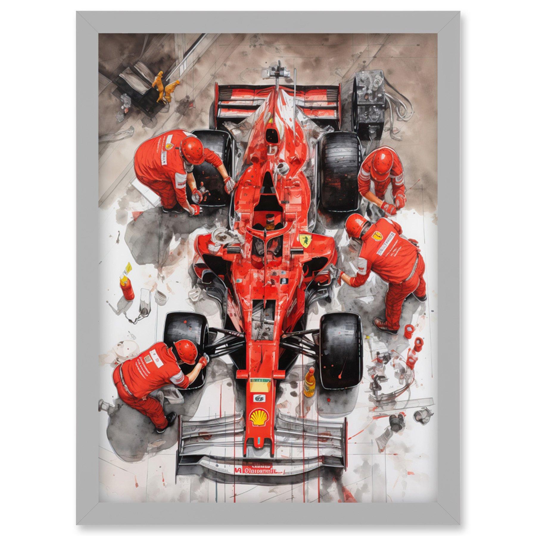 Grand Prix Race Car Wheel Change Aerial Shot Artwork Framed Wall Art Print A4
