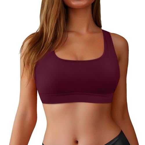 Generic Racerback Yoga Bra for Women, Pure Color Wide Hem Elastic Sports Bra That Transport Sweat for Dance (M)