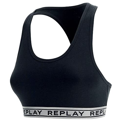 REPLAY I101304-001-B111 Lady Racerback Bra Style 2 T/C 1pcs Cover hangtag Sports Bra Women's Black/Silver/Black Size L