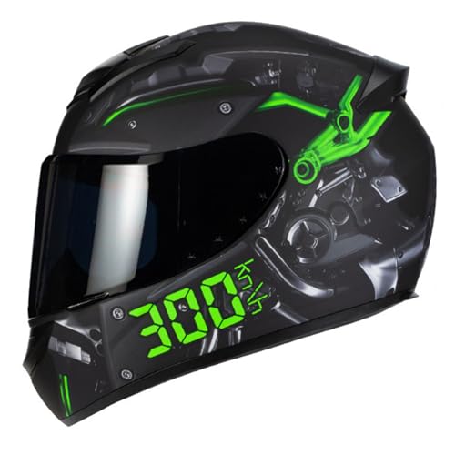 RUYICZB Full Face Motorcycle Helmet with Tinted Visors And Multi-Ventation Suitable Motorbike Moped Street Bike Racing Helmet with Graphic for Men And Women DOT/ECE Approved,Black green,L 57~58CM
