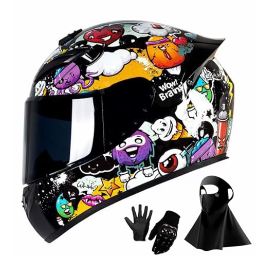 2025 Motorcycle Full Face Black Sun Visor Helmets for Adults Street Bike Racing Motorbike Helmet with Gloves Mask DOT Approved(KK13,S(55-56cm))