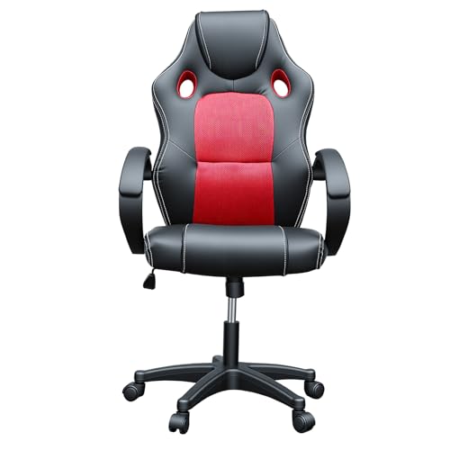 Panana Racing Style Office Gaming Chair, PU Leather Desk Ergonomically Adjustable Sport Swivel Chair With Padded armrests (Red)