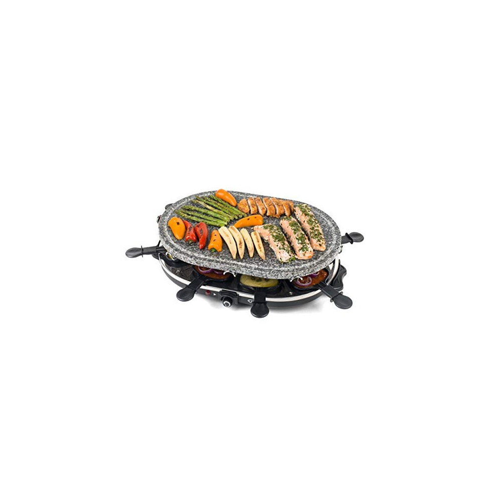 Giles & Posner EK1872G Electric Stone Raclette Grill - Indoor Tabletop 8 Person Raclette, Removable Stone Grill Hot Plate, Non-Stick Grill Pans,